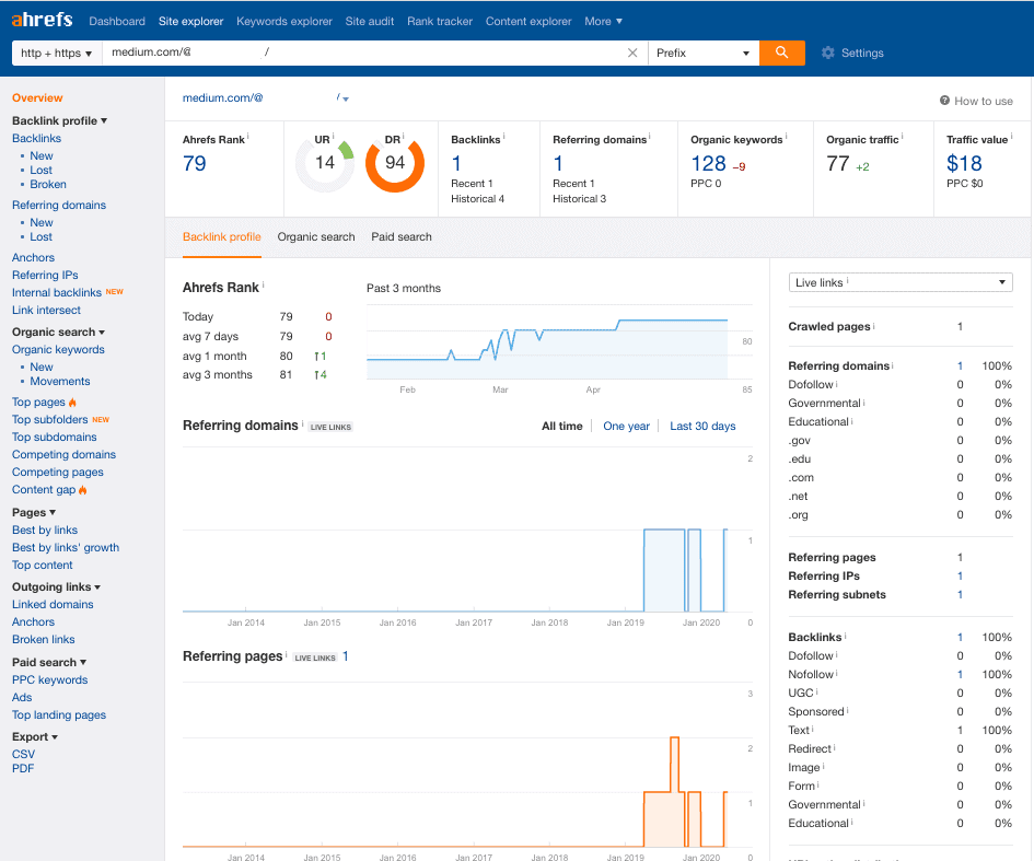 For the sake of the test, I’m not going to disclose the actual medium.com URL, because as some of you might be aware, direct traffic and search traffic (and subsequently time on site) are ranking factors, and will affect the overall outcome.